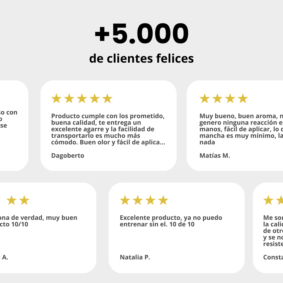 Elimina el sudor de tus manos y mejora tu agarre como nunca antes, permitiéndote hacer entre 1-2 repeticiones más y levantar un par de kg más. (Úsalo especialmente en días de espalda, después me lo agradeces)