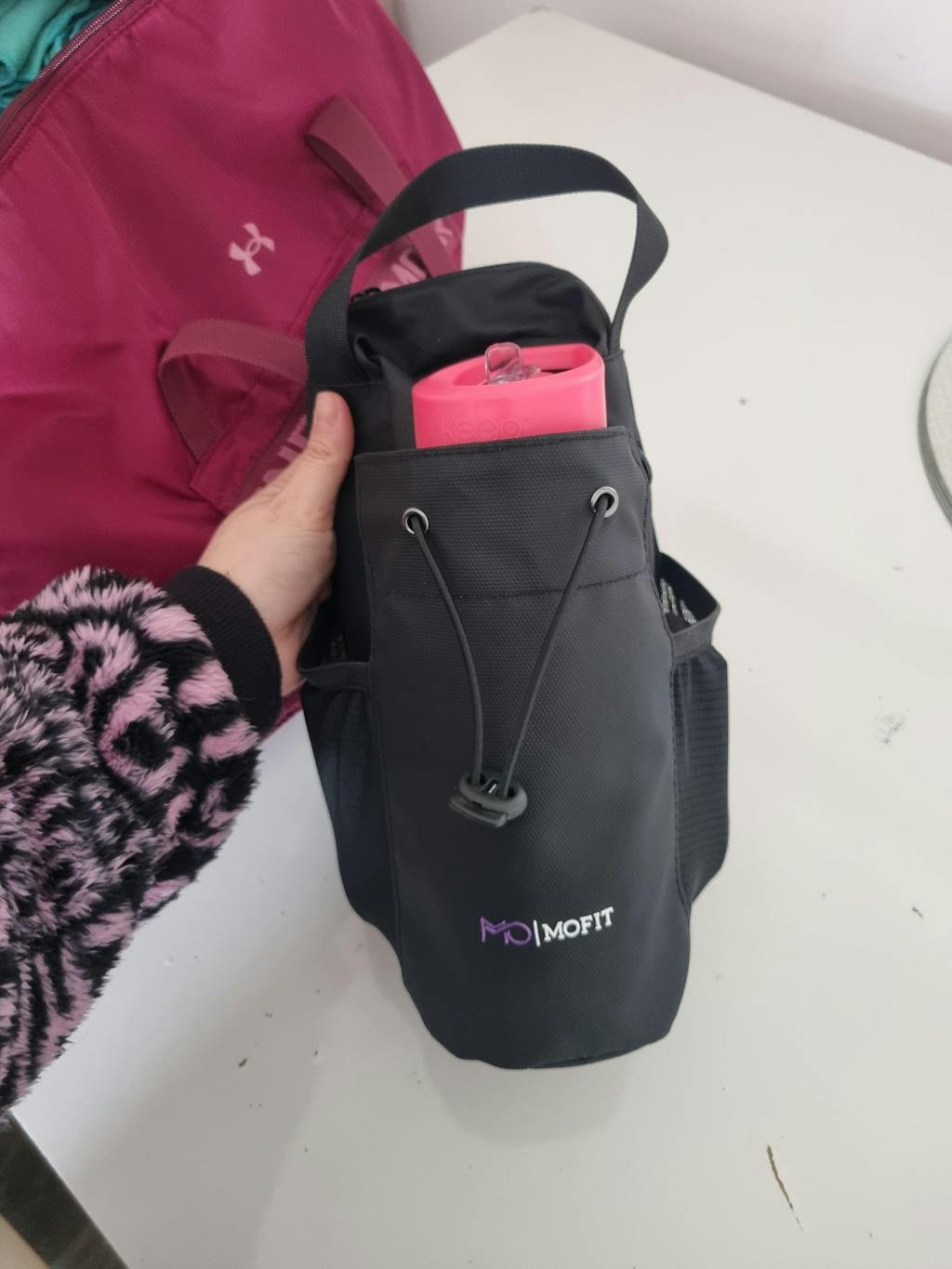 Me sorprendió el tamaño del bolso. Cabe todo lo necesario llaves, lentes, billetera, etc. Y el imán se agarra sin problemas a las maquinas incluso cuando la botella de agua está llena.